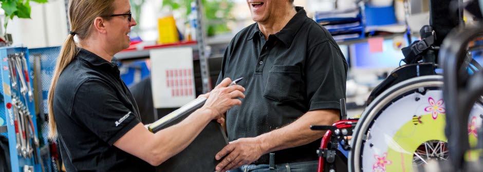 Hjälpmedel anpassas och monteras för att passa patientens behov, inom tillverkarens begränsningar. Vi monterar ihop hjälpmedlet och dess delar innan leverans. Vill du ha hjälp med anpassning, inställning eller eftermontering av delar till ett hjälpmedel behöver du skiva en arbetsorder via Beställningsportalen.