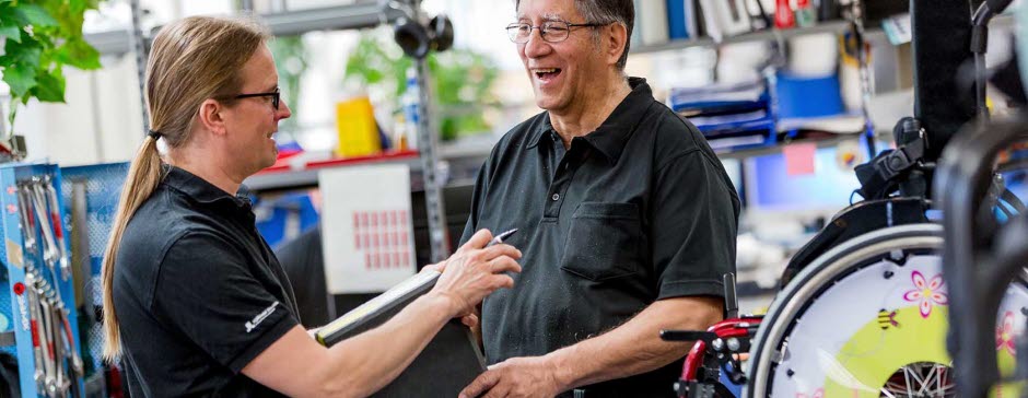 Åtgärder på befintliga hjälpmedel utförs hos oss